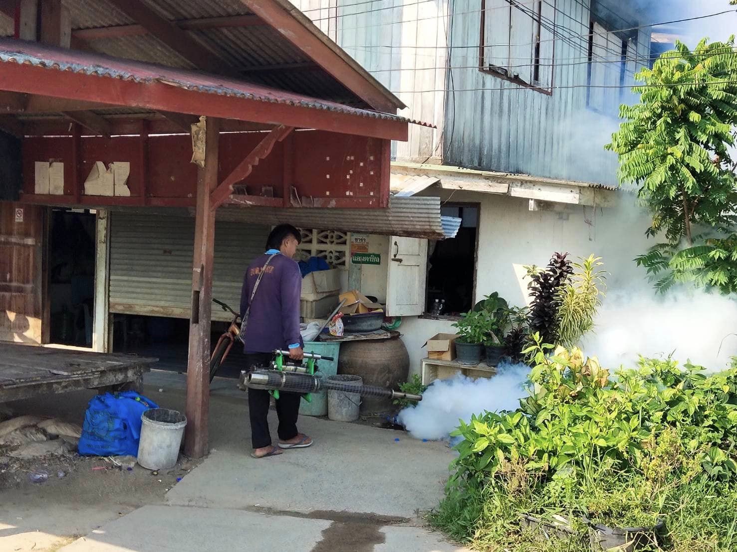 กิจกรรมลงพื้นที่ฉีดพ่นหมอกควัน เพื่อกำจัดยุงลายในพื้นที่ตำบลบางครก ประจำปีงบประมาณ 2566