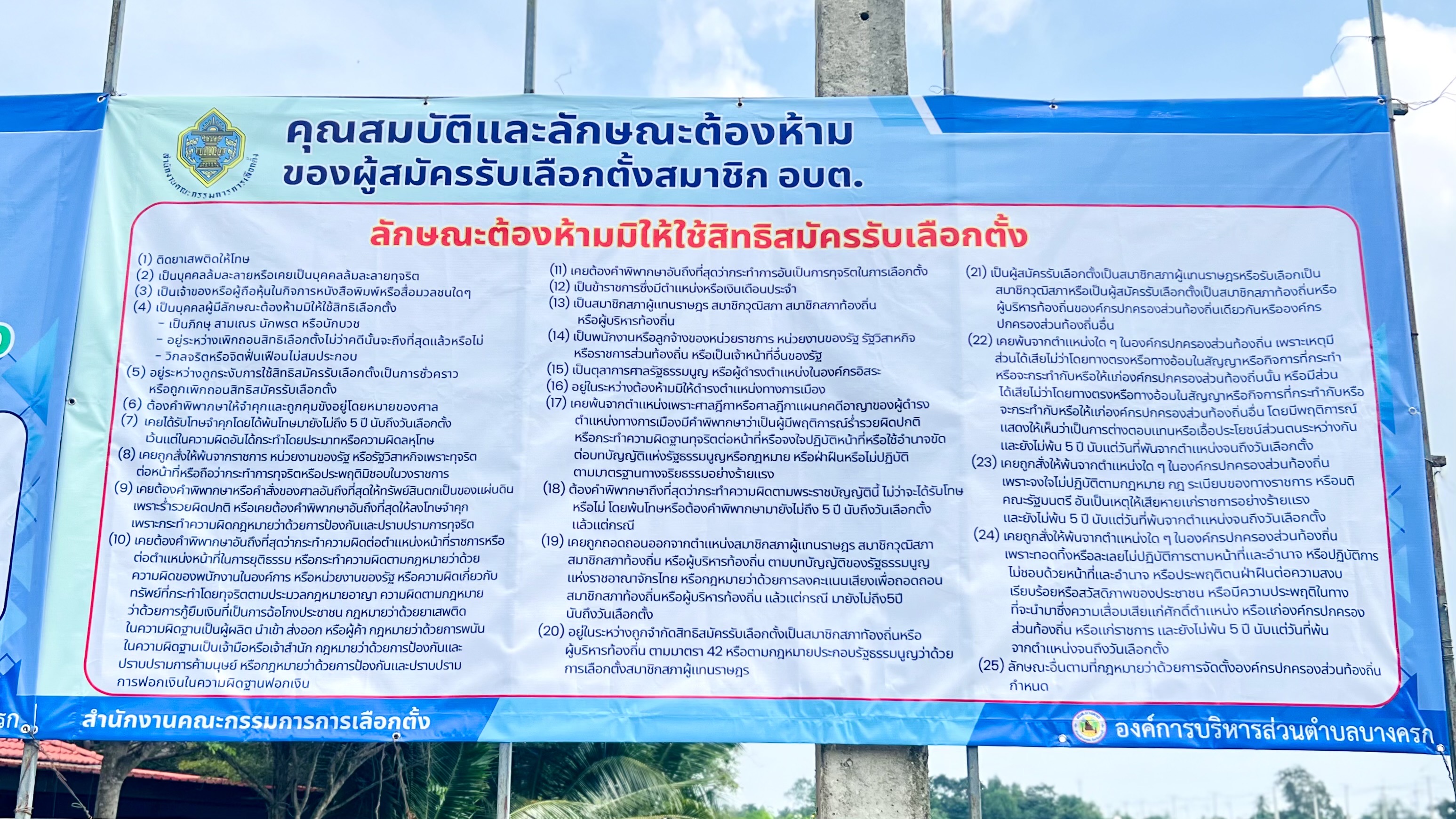 ประชาสัมพันธ์ คุณสมบัติและลักษณะต้องห้าม ของผู้สมัครรับเลือกตั้งสมาชิกอบต.